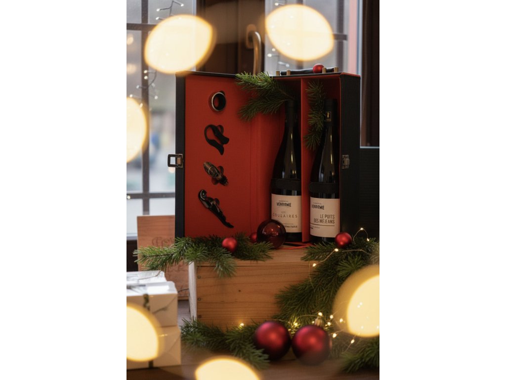 Luxusní vánoční dárková krabice obsahuje dvě prvotřídní francouzská vína z vinařství Domaine Vendome. Elegantní kombinace bílého a červeného vína je ideálním dárkem pro milovníky kvalitních vín, gurmány nebo obchodní partnery.
