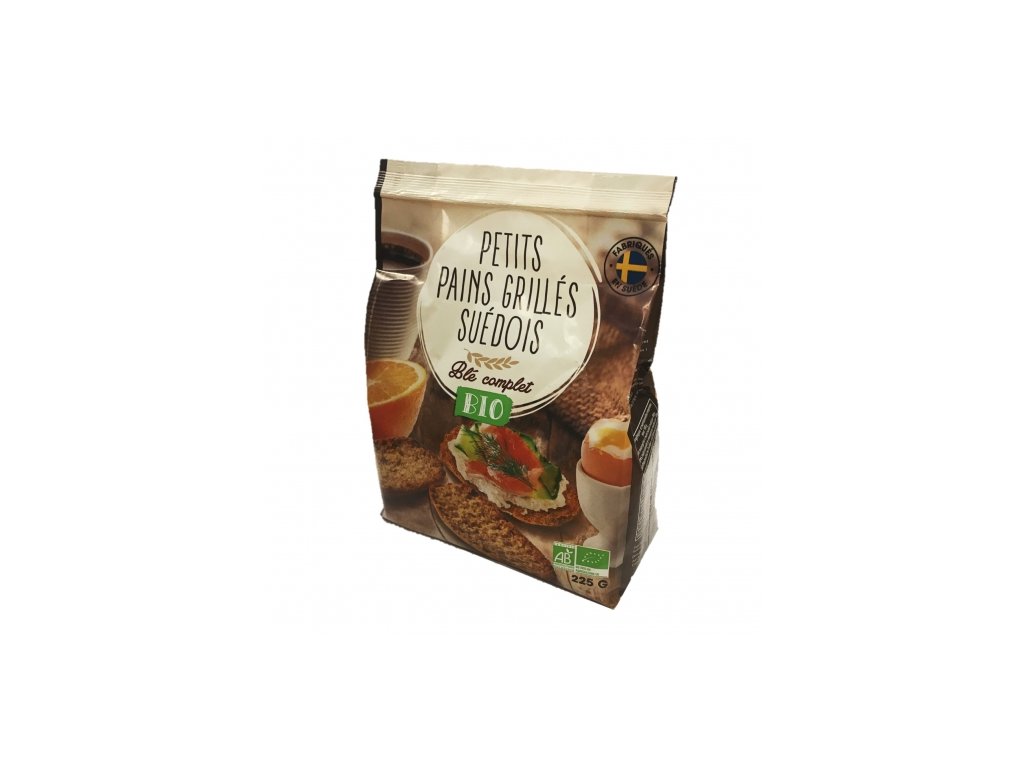 ŠVÉDSKÉ BIO OPÉKANÉ CHLEBÍČKY S CELOZRNNOU PŠENICÍ BALENÍ 225G - PETITS PAINS GRILLÉS SUÉDOIS BIO AU BLÉ COMPLET PAQUET 225G